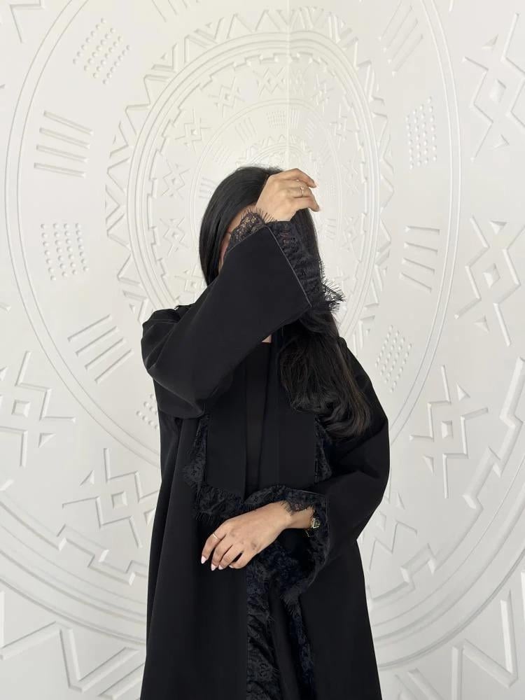 - اسم المنتج: عباية بياقة دانتيل فرنسي